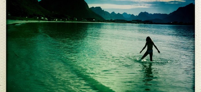 È successo a Ramberg, isole Lofoten, Norvegia, agosto 2015. Per forza. Dietro la montagna abbiamo trovato Formentera in versione nordica. Guardare foto per credere. Un chilometro di sabbia bianca, tipo borotalco. Deserta. A un certo punto c’eravamo solo noi, i gabbiani e il sole incandescente della Scandinavia a tentarci. E noi, ehm, il baby, ha ceduto.