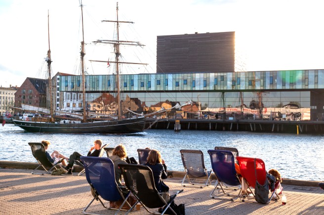Davanti ad Amalienborg, il castello dove vive la regina Margrethe, non c’è un cancello e lei, fino a qualche anno fa, girava per la città in bici per andare dal fruttivendolo a comprare i broccoli. Inoltre, questa è l’unica metropoli dove si può ancora fare il bagno in pieno centro: all’Island Brigge hanno costruito una piscina e ci hanno messo dentro un trampolino di design che assomiglia alla prua di una nave. Da qui, d’estate, la gente si tuffa tra i flutti come se niente fosse. Più in là, studi d’architetti giovanissimi hanno trasformato i silos in residenze spettacolari come il Gemini che è diventato il simbolo della Nuova Copenaghen. Facile intuire perché: intorno ai due cilindri che fino all’altro ieri contenevano soia hanno appeso appartamenti in vetro e acciao che guardano i dock e di sera s’illuminano come candele.