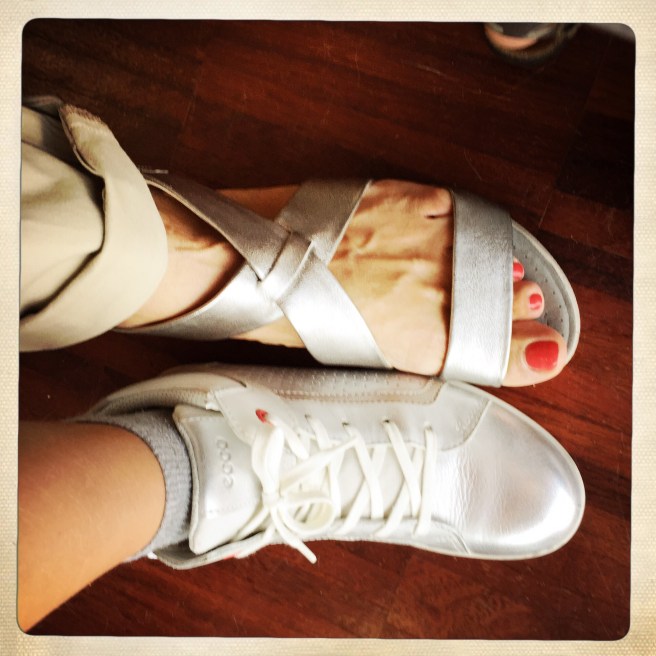 Dopodiché sappiate che anche noi possiamo incedere, marciare, gironzolare e vagabondare con un paio di sandali Ecco rasoterra senza soffrire e/o assomigliare a una soccer mum americana. Ve lo giuro. Vedere foto, please.